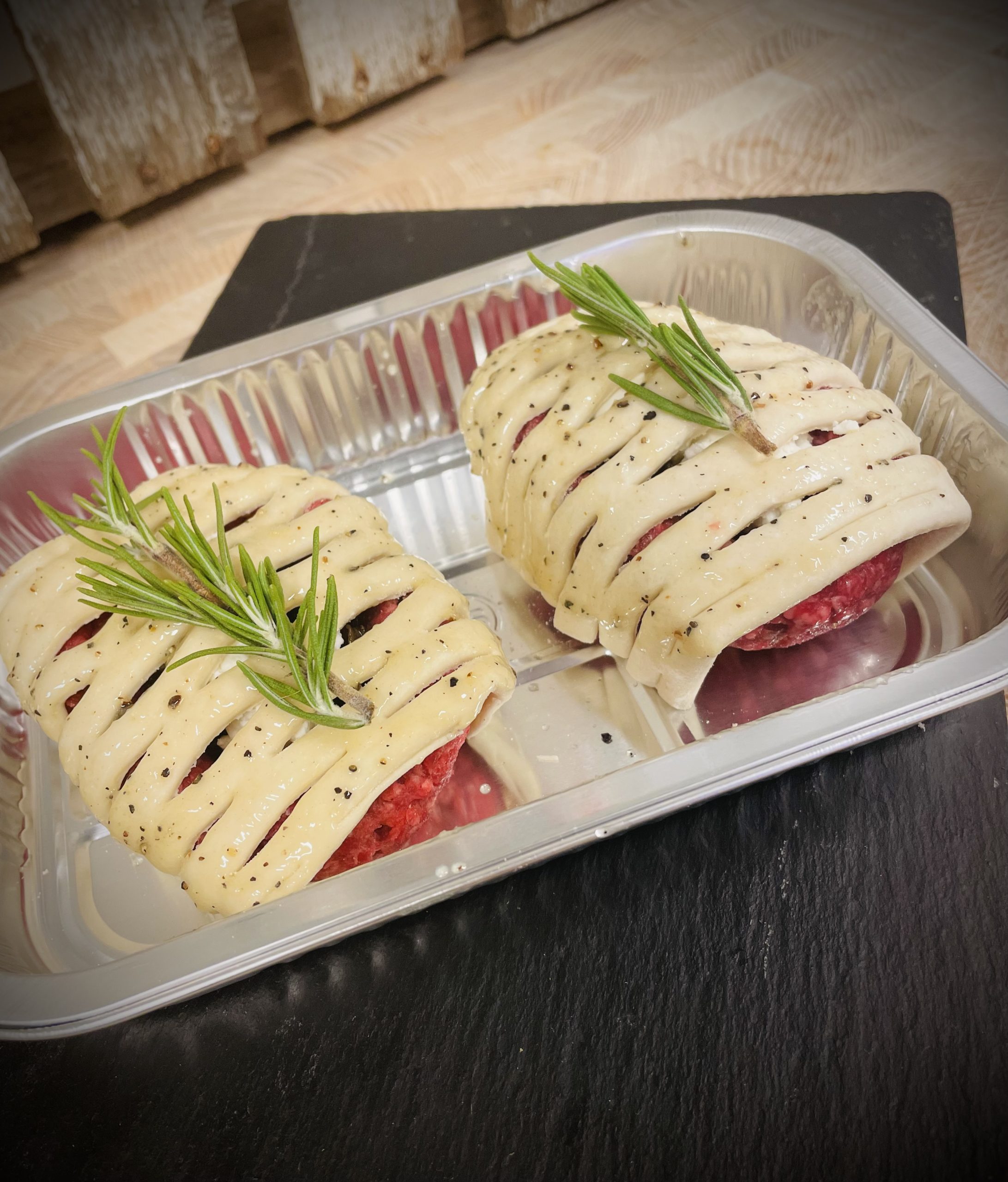 Beef tartlets filled with goats cheese & red onion marmalade.