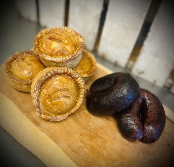 Black Pudding Pork Pie lovingly made at Craggies.  Delicious warm and cold.
