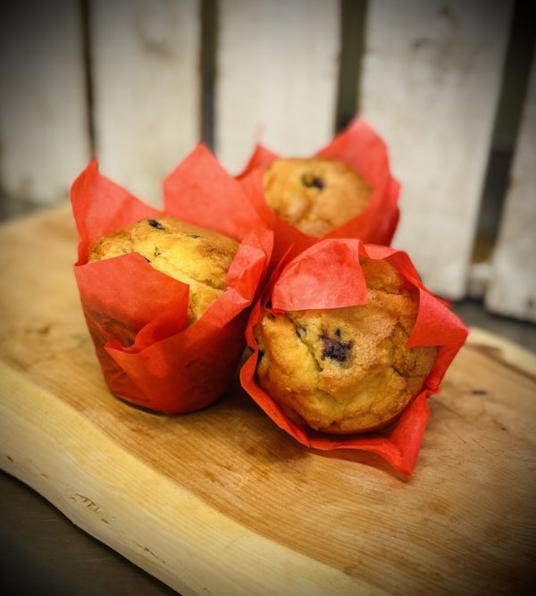 2x Freshly baked blueberry muffins, lovingly made by Craggies.