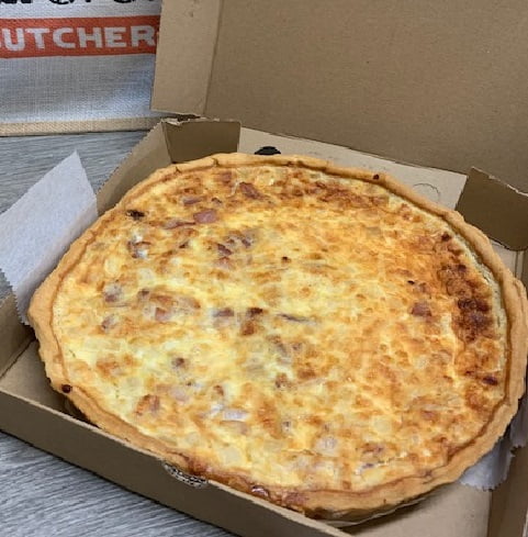 Craggies homemade cheese and onion quiche, lovingly made to order.