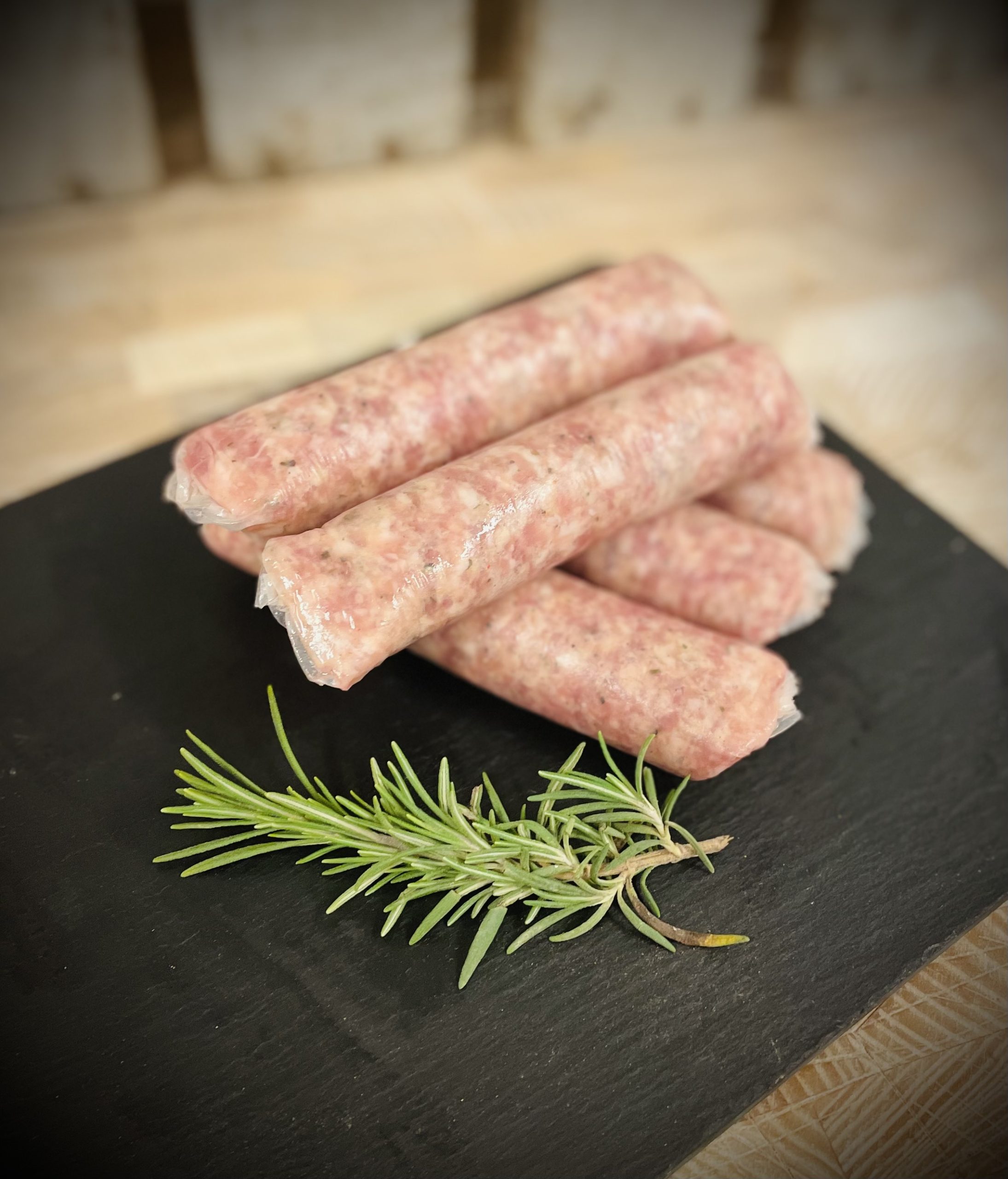 6x Yorkshire reared pork sausages with cracked black pepper. Lovingly made at Craggies