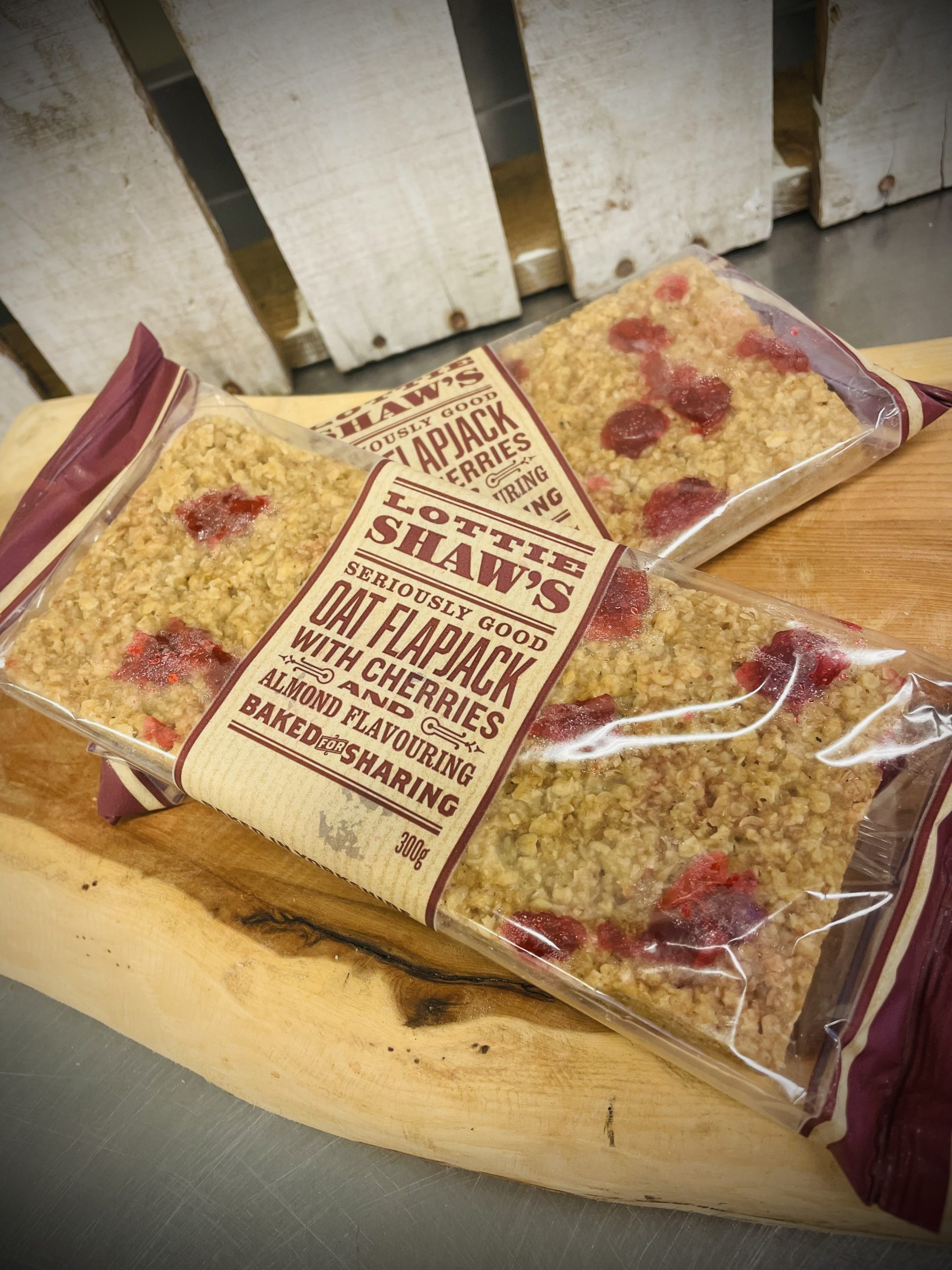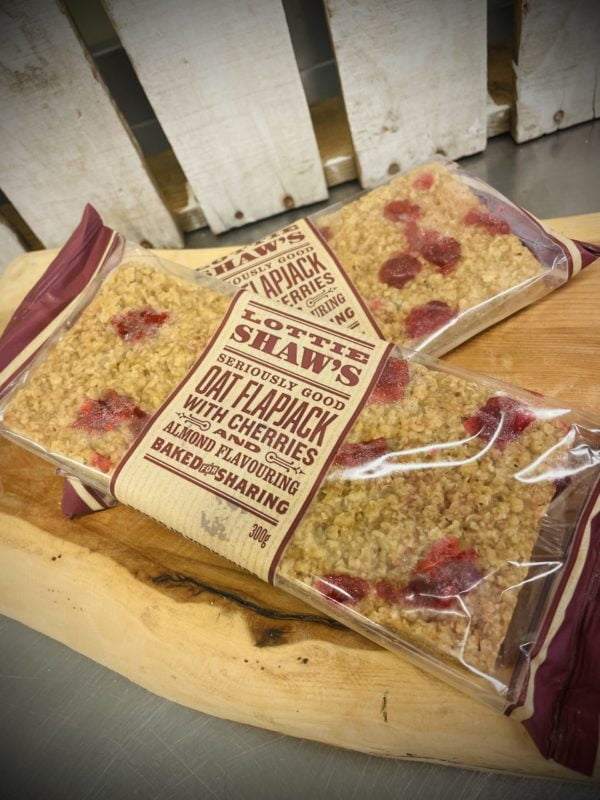 Seriously good oat flapjack with cherries and almond flavouring, locally produced from Brighouse.