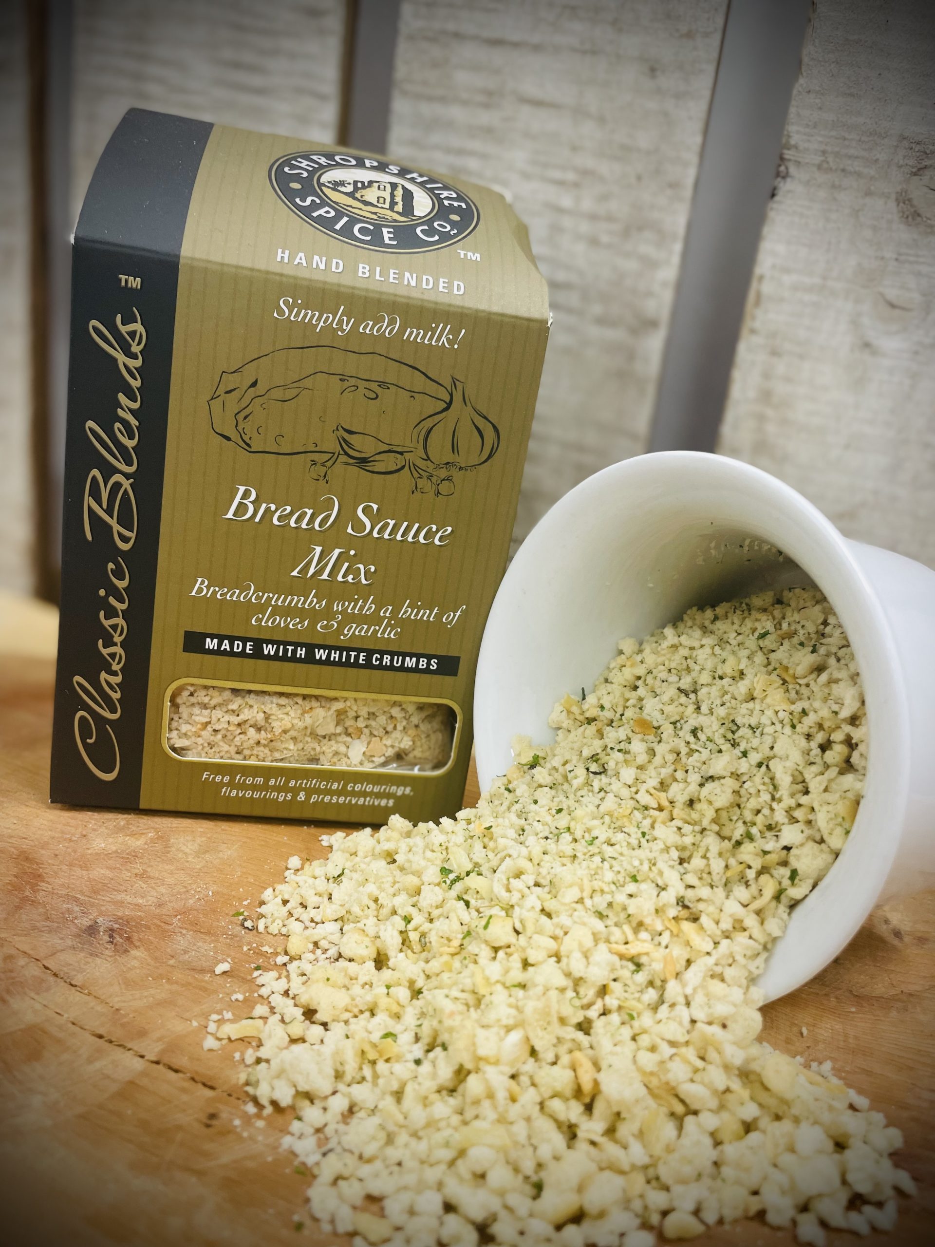 Shropshire Spice Co Hand Blended Bread Mix Sauce, made with white breadcrumbs with a hint of cloves and garlic.