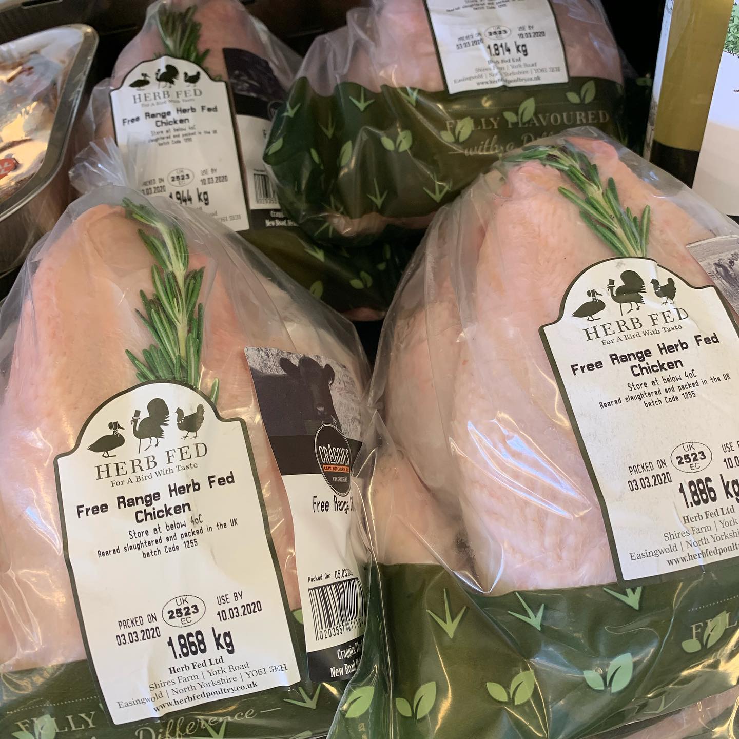 Award winning chickens from Herb Fed, which are fed a unique diet of fresh herbs, and happily living out in the fields as birds should. These birds have a flavour that is difficult to beat!